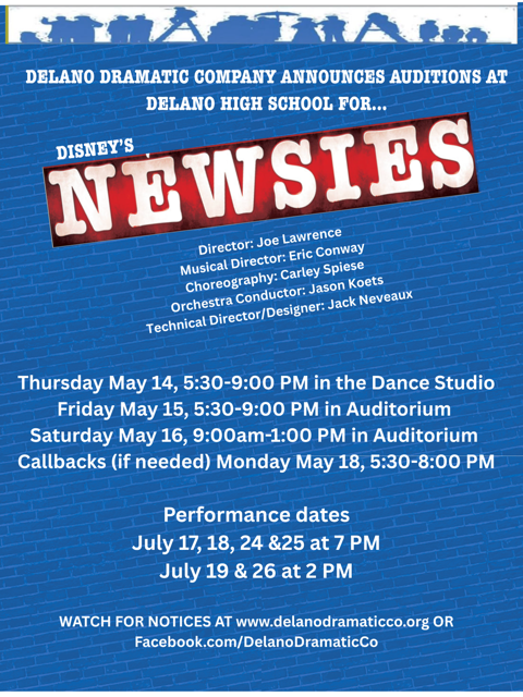 Delano Dramatic Company (DDC) is a community theatre based in Delano. Over the last several years, some key people who have deep roots in the Delano Public Schools drama program and in the Delano community have come together to form a new nonprofit company to produce community theatre in Delano. This new company is supported by the Delano Area Council for Arts and Culture, and the Central Minnesota Arts Board.